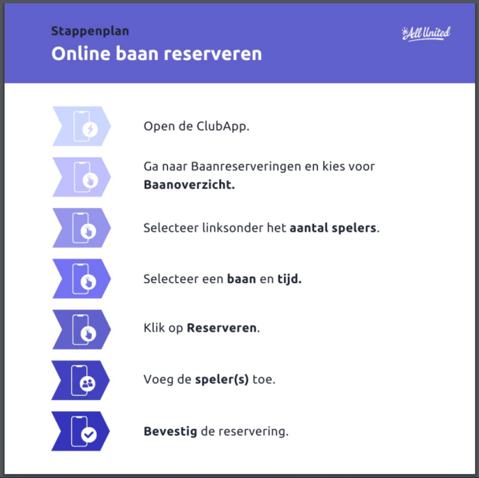 De ClubApp van AllUnited krijgt een nieuwe module voor het reserveren van de tennisbanen. Vanaf nu is deze beschikbaar in de Clubapp.